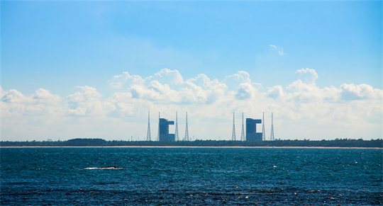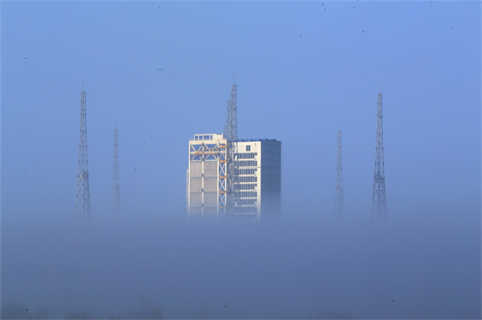 两座巨大的发射塔架不远处,绿色的植被、辽阔的大海与蔚蓝的天空融为一体,让人对这座年轻的发射场充满遐想。