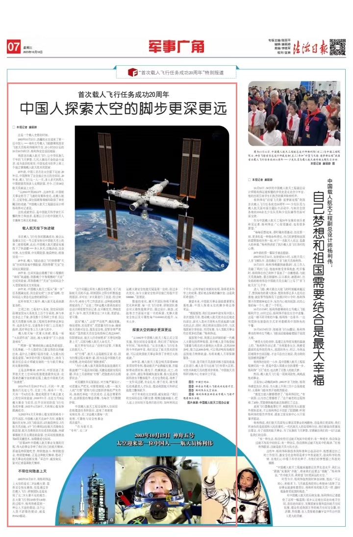 “从2003年到2023年,这20年里,中国航天事业经历了飞速的发展和变化,在载人航天、卫星导航、深空探测等领域均取得了举世瞩目的成就。”中国载人航天工程副总设计师杨利伟对记者说。