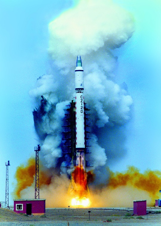 图为1992年8月9日长二丁首飞,发射返回式卫星。