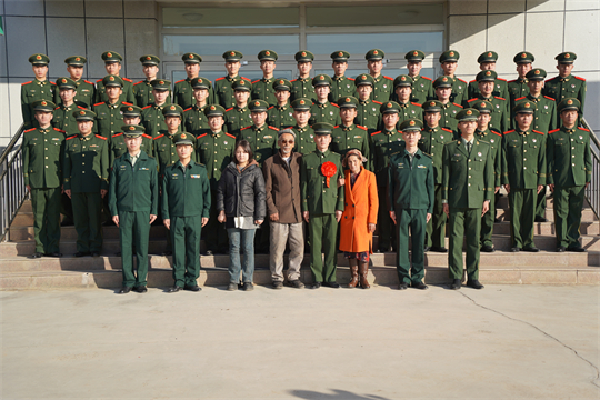 图为卡德尔大叔一家与中队官兵合影留念。黄超 摄