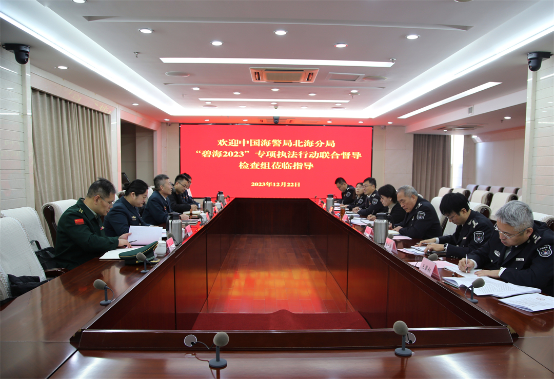 为督促指导辖区执法机构落实海洋资源环境执法管控措施、严格规范执法,12月下旬,中国海警局北海分局与生态环境部海河流域北海海域生态环境监督管理局联合,对山东辖区“碧海2023”专项行动进行督导,重点围绕海洋资源环境监管执法形势、日常及专项执法开展情况、重点敏感涉海项目监管、重大疑难案件查处、执法协作配合等内容,走访9家执法机构、检查2处典型涉海项目。
