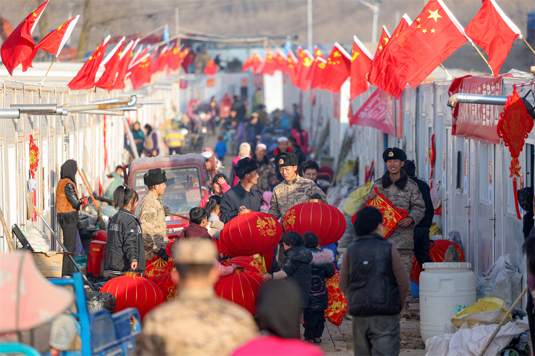 元旦期间,武警甘肃总队官兵坚守在积石山县一线,他们完成过渡帐篷拆卸、救灾物资搬运、协助受灾群众搬入固定板房等任务后,与驻地群众一起过节。武警甘肃总队临夏支队官兵在积石山县刘集乡阳屲村,为临时安置点村民送去灯笼和中国结。“身为任务部队官兵,一定会尽最大努力保障人民群众生命财产安全,守护人民幸福安宁。”临夏支队某中队小队长霍星宇说。