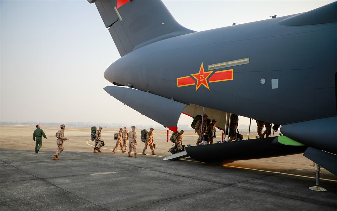停机坪上,冷风扑面。西部战区空军任务机组带队机长梁瑶一边进场一边与机组成员研究,修订多套特情处置预案,机务官兵按线路完成飞行前检查。随后,装载人员、物资14吨的运-20起飞。
