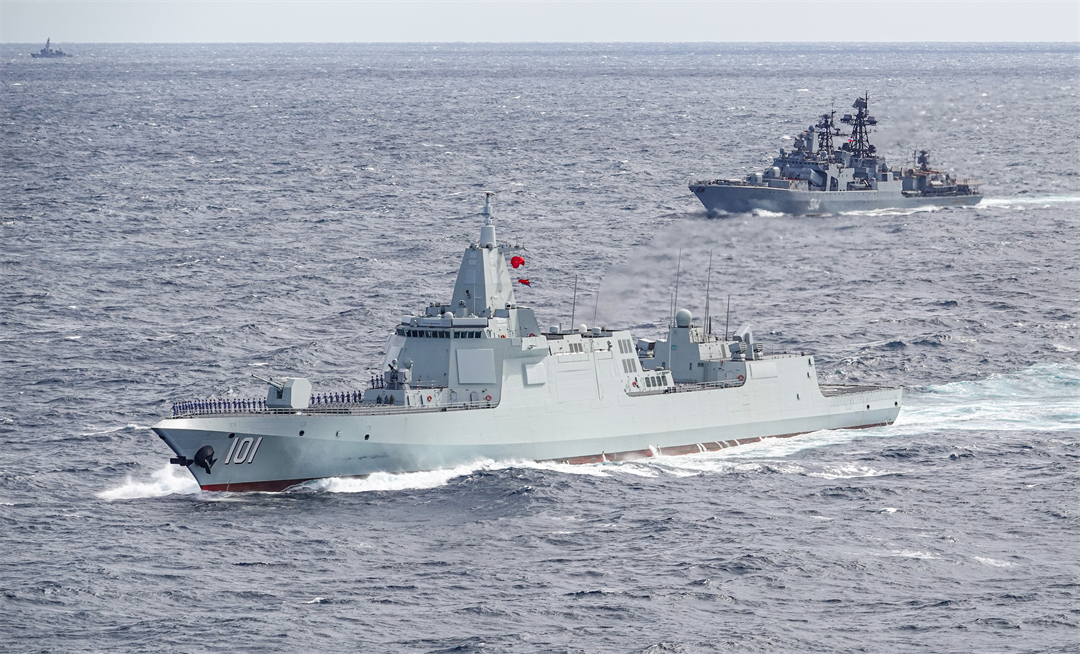 图为2021年10月南昌舰参加中俄“海上联合—2021”演习。王游 摄