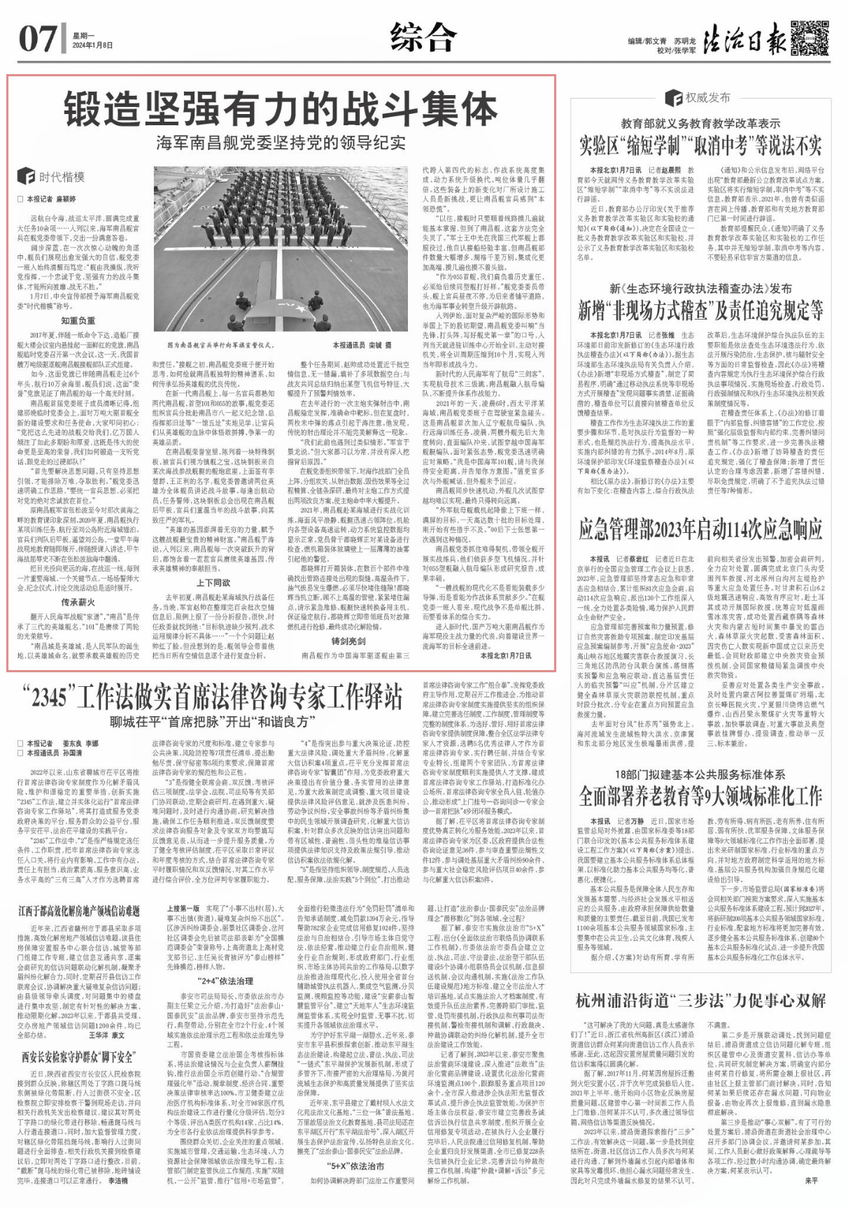 1月7日,中央宣传部授予海军南昌舰党委“时代楷模”称号。