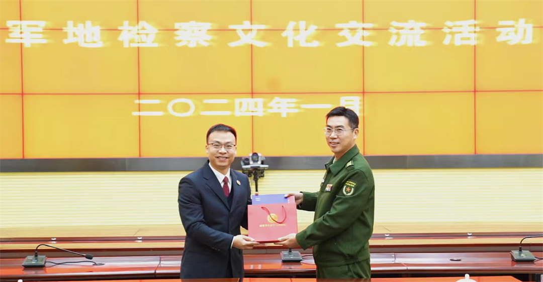 图为解放军长沙军事检察院赠送军事检察文化产品。