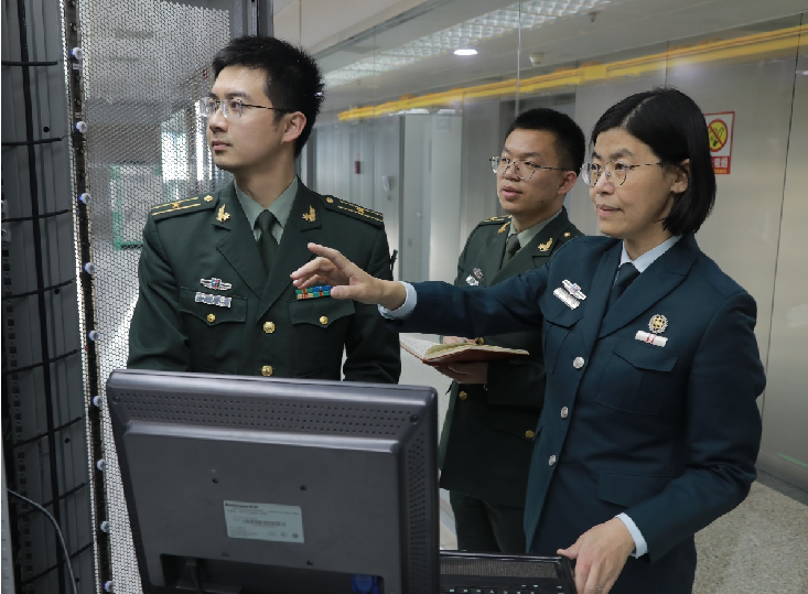 春夏之交,白晓颖一行来到戈壁大漠边防某部,深入指挥所、测试站、控制室一线,与官兵面对面座谈交流;结合最新科研成果,为部队网信系统建设、数据资源使用等方面出谋划策。
