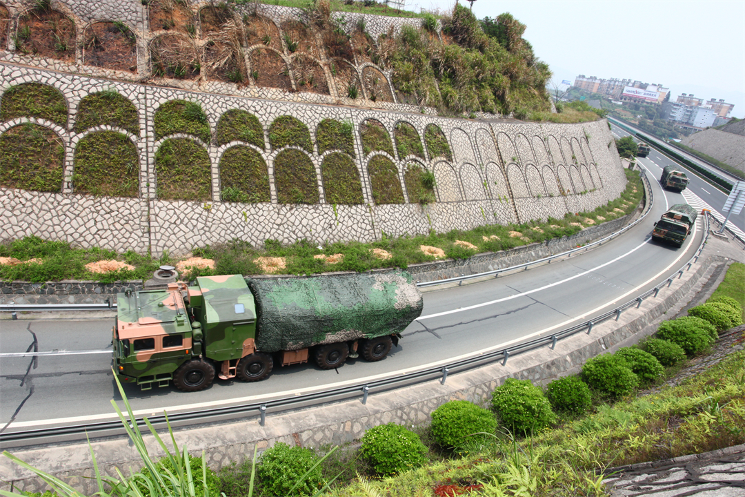 图为东部战区海军某团突击群机动行军,奔赴发射阵地组织演练。徐文廷 摄