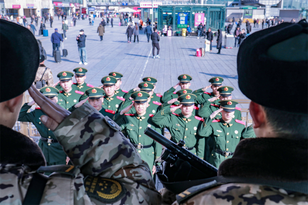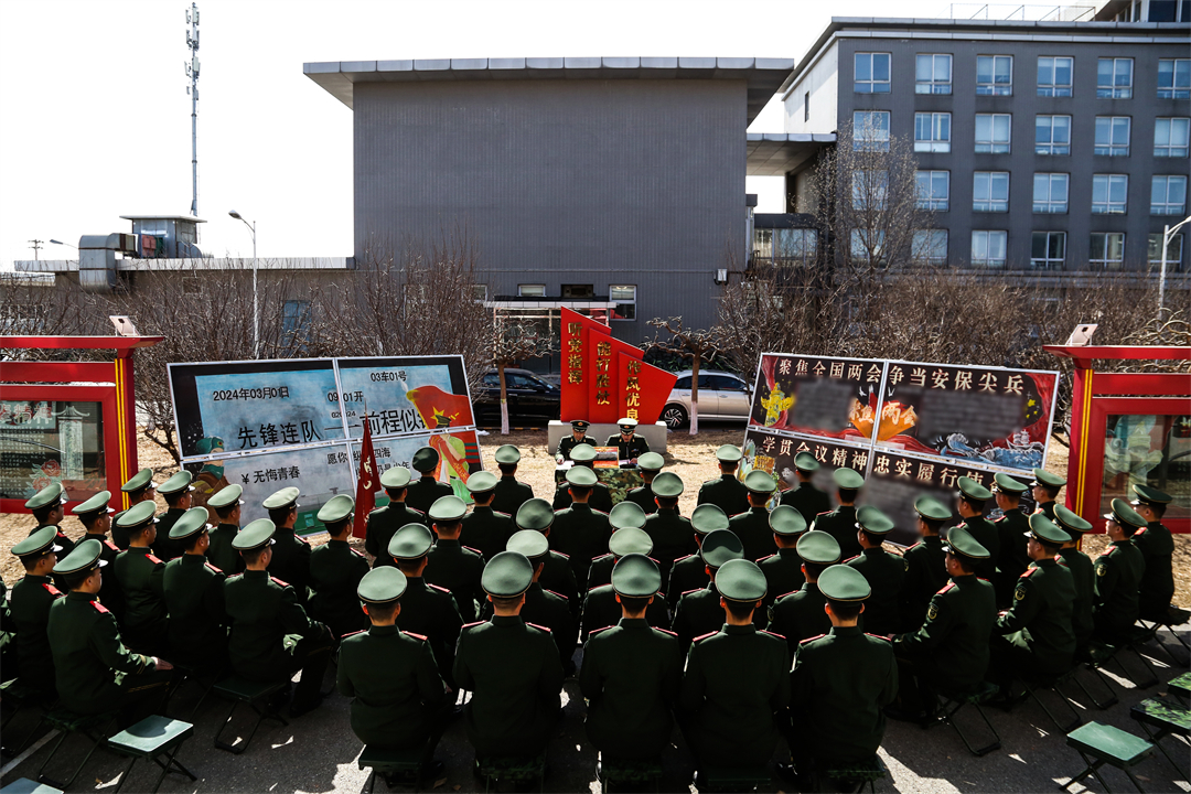 2月29日,武警北京总队执勤第六支队举行春季退役老兵向军旗告别仪式,送别在岗奉献两年的老兵。