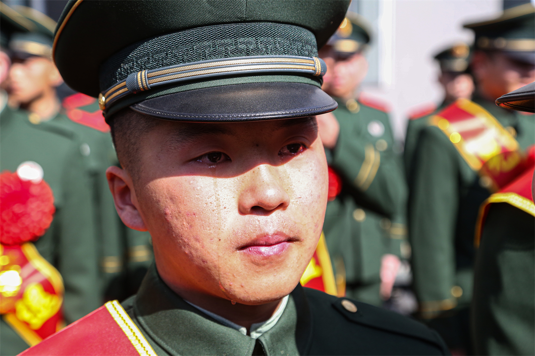 图为卸下军衔后退役老兵热泪盈眶。尚云卓 摄