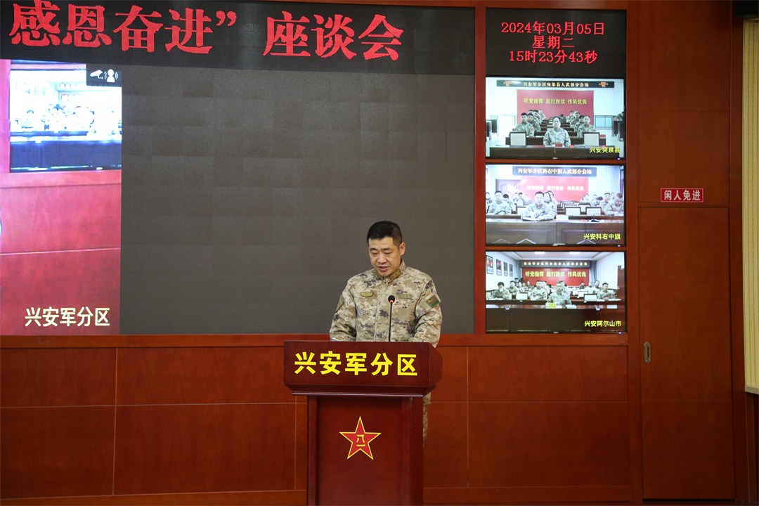 通过座谈会,大家更加深切感受到统帅心系边防官兵的情怀,听党指挥的意志更加坚定,实现中国梦强军梦的信心更加坚定。下一步,兴安军分区将持续推动国防动员和后备力量建设实现高质量发展,为筑牢祖国北疆安全稳定屏障贡献力量。
