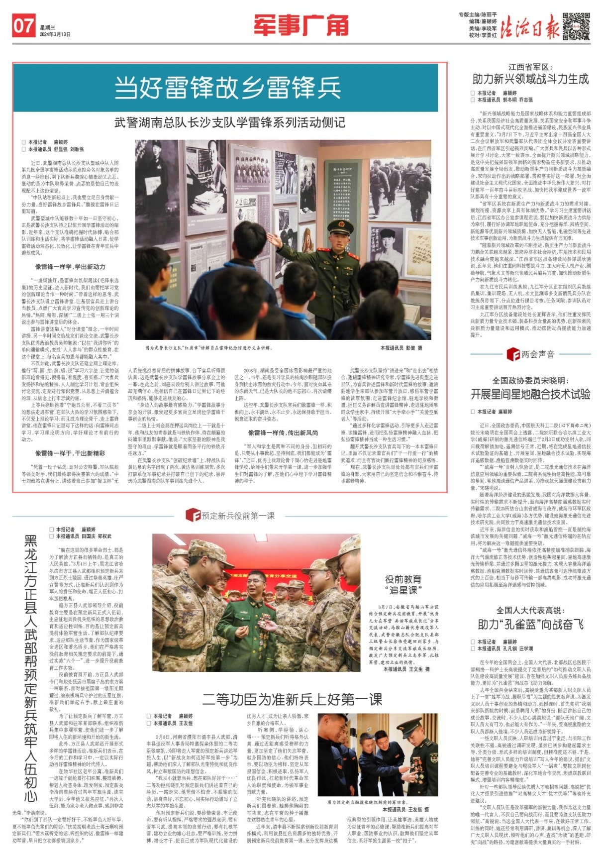 武警望城中队能够数十年如一日坚守初心,正是武警长沙支队持之以恒开展学雷锋活动的缩影。近年来,这个支队准确把握时代脉搏,贴合部队训练和生活实际,将学雷锋活动融入日常,使学雷锋活动常态化、长效化,让学雷锋在青年官兵中蔚然成风。