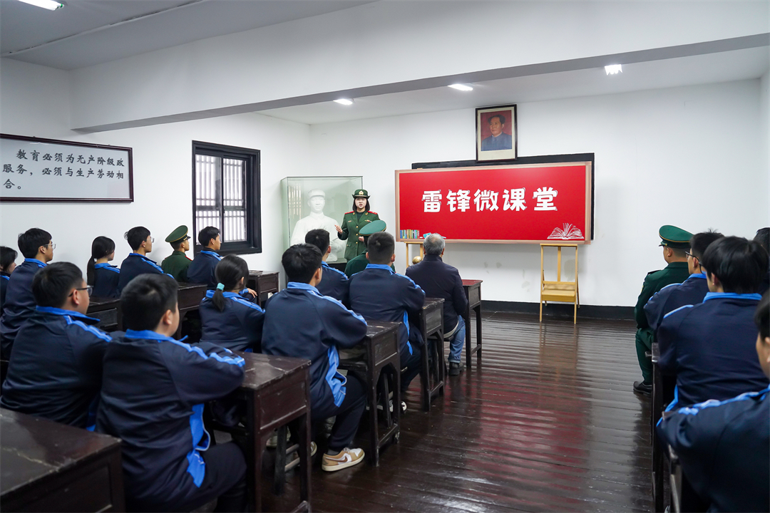 图为武警长沙支队优秀政治教员在雷锋母校开展雷锋精神教育。
