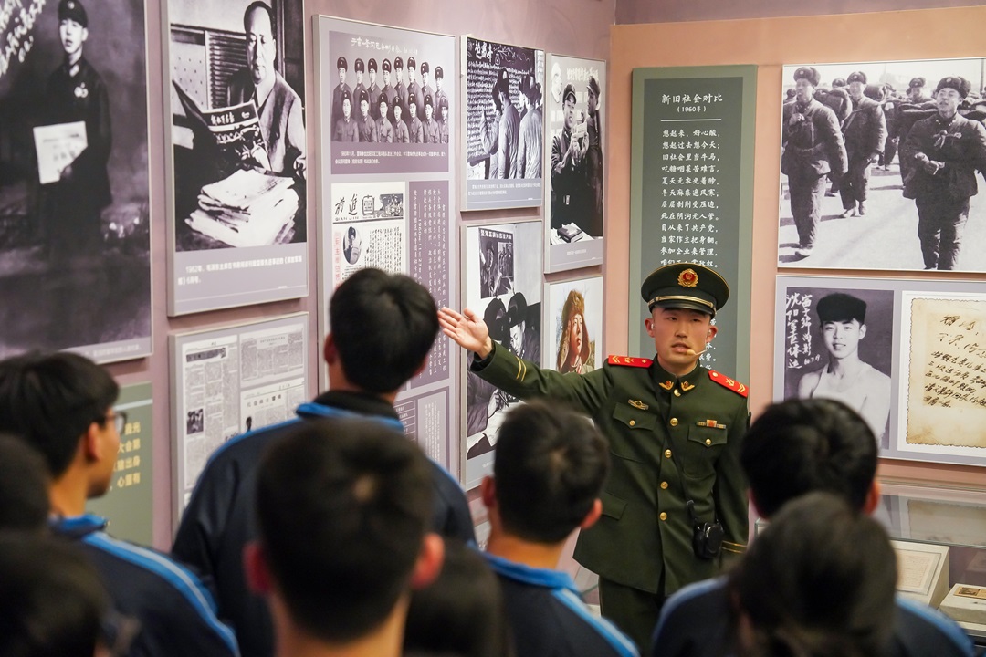 图为武警长沙支队“红肩章”讲解员在雷锋纪念馆进行义务讲解。