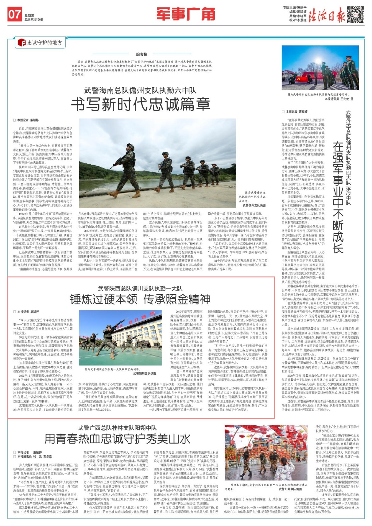 “我们始终用照金精神固根铸魂,在励志育人上深植忠诚基因。近年来,大队先后圆满完成多起急难险重任务,多次受到上级表扬。”武警铜川支队执勤一大队赵斐说。