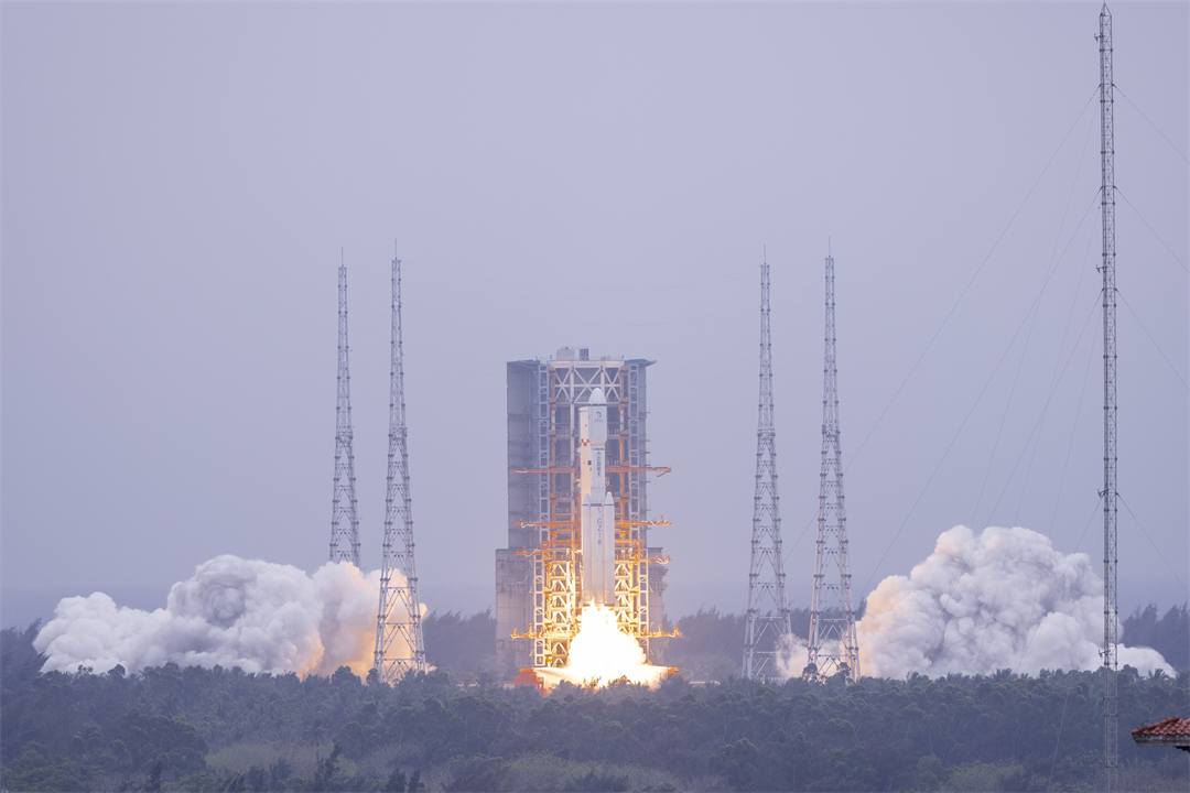 长征八号遥三火箭采用芯级捆绑两枚液体助推器的两级半构型,全箭总长50.3米。此次任务是长征八号运载火箭首次执行探月轨道发射任务。研制团队根据多窗口多弹道、低空高速飞行剖面等任务需求,对火箭进行了设计改进和优化,扩展了任务适应性,提高了可靠性。此次还搭载发射了天都一号、天都二号通导技术试验星。这是长征系列运载火箭第512次发射。