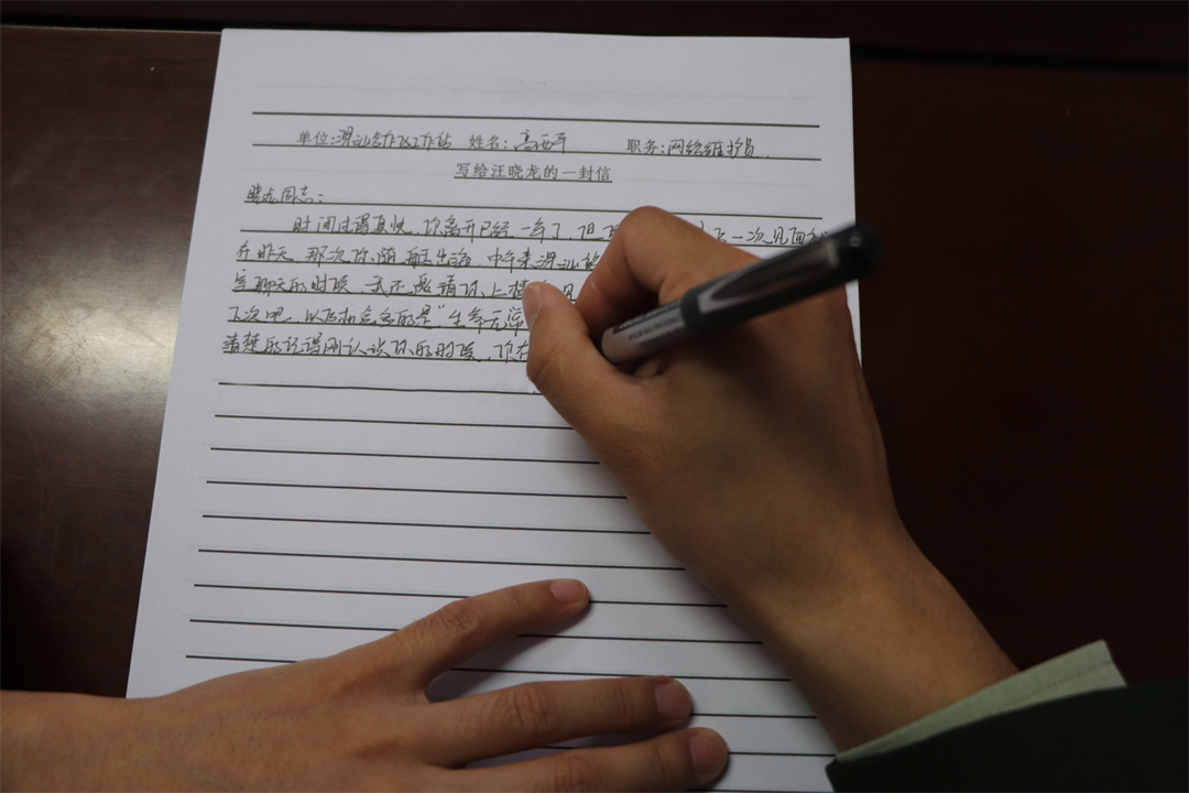 汪晓龙同志逝世已经1周年了,在这1年里,广东海警局执法员们有很多心里话想跟晓龙说,在该局各级营区的每个角落,都有给汪晓龙写信的身影。他们通过写信寄托对英雄的思念,回顾一年来自身的成长进步和不足之处,勉励和鞭策自己向英雄看齐。舰艇的甲板上,执法员们席地而坐,围绕“学习英雄精神 争做新时代守海人”展开讨论,结合实际谈感受,立足岗位讲做法,让汪晓龙精神切实融入到每个工作岗位。