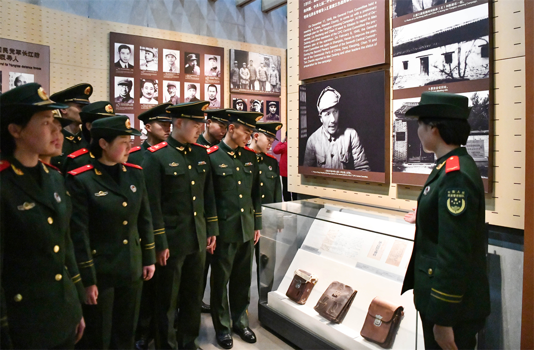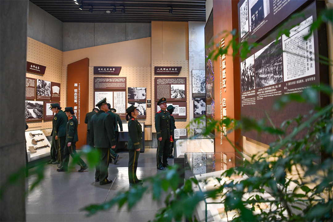 图为3月27日,武警合肥支队官兵在渡江战役纪念馆参观见学追寻先辈足迹。