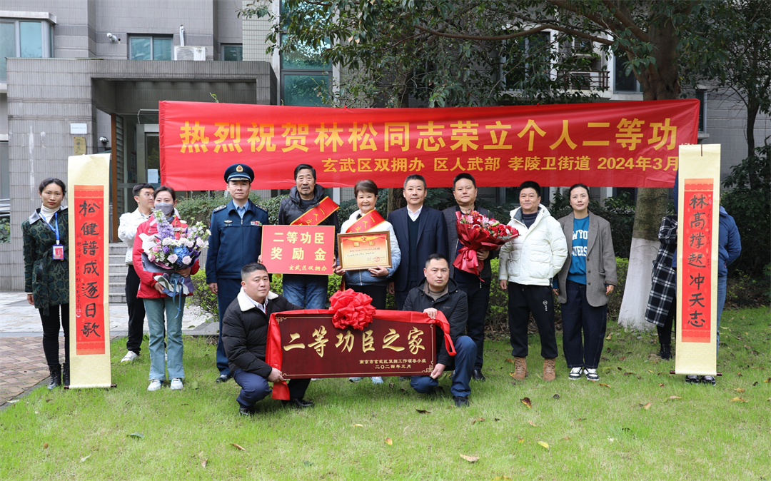 图为3月26日,南京市玄武区军地送喜小组为二等功臣家庭送上喜报和嵌名贺联。贾玉川 摄