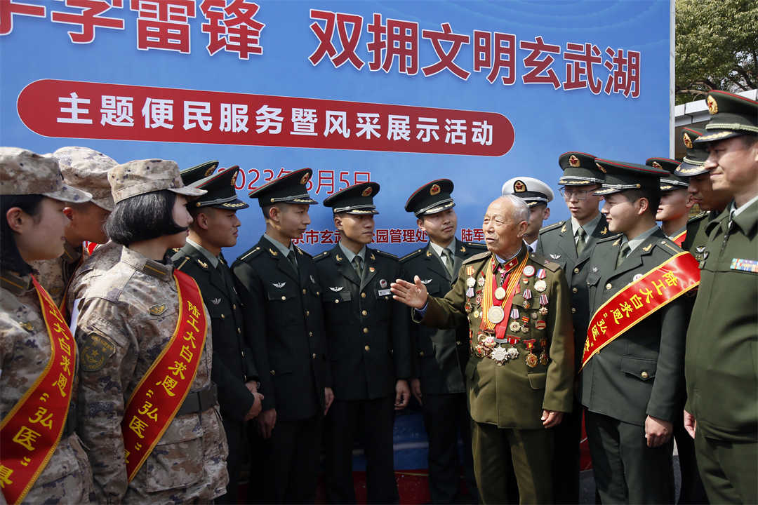 图为2023年3月5日,雷锋生前战友赵明才向南京驻军官兵讲述雷锋故事。张永祥 摄