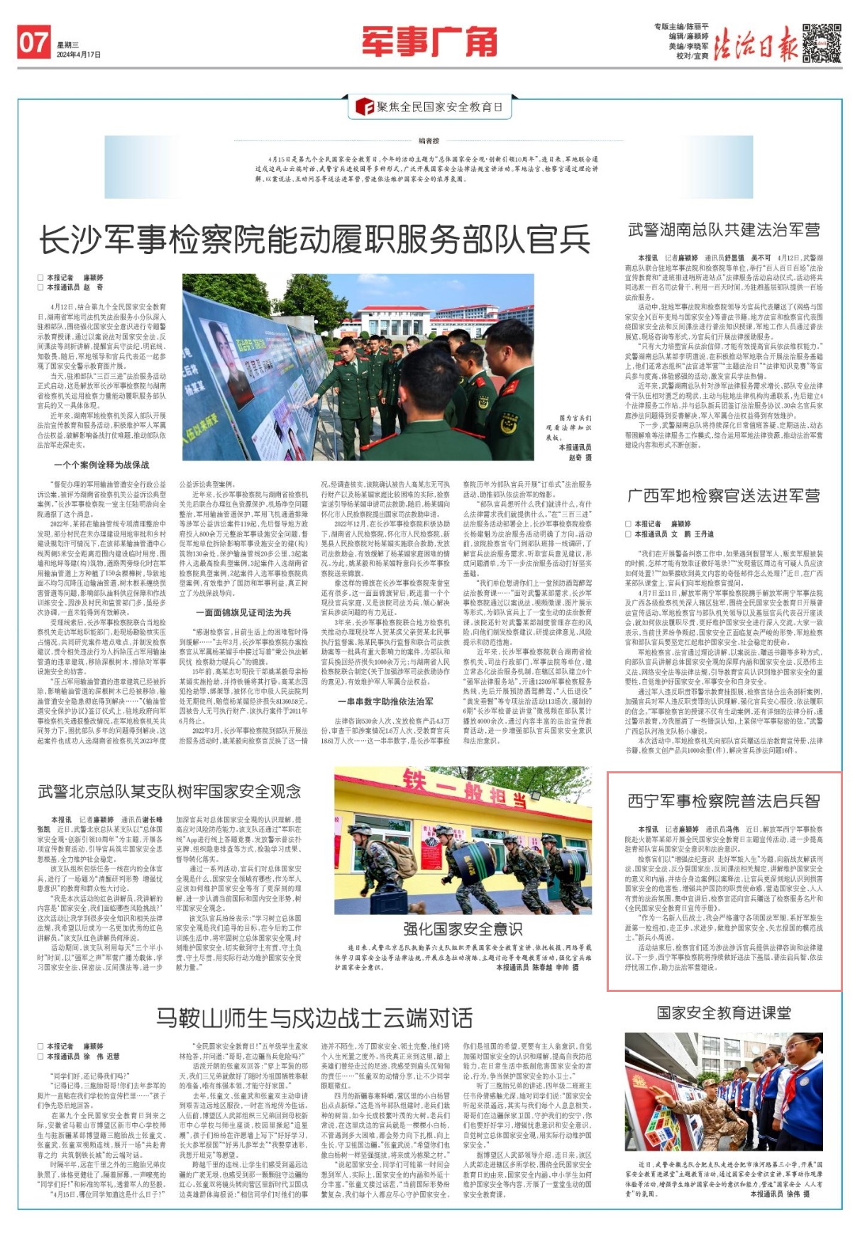 近日,解放军西宁军事检察院赴火箭军某部开展全民国家安全教育日主题宣传活动,进一步提高驻青部队官兵国家安全意识和法治意识。