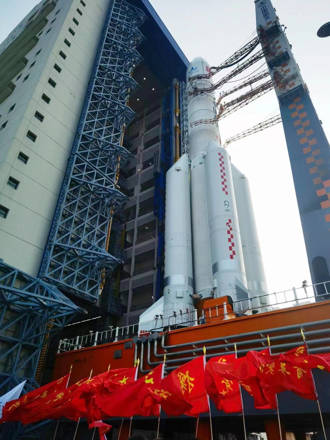嫦娥六号探测器、长征五号遥八运载火箭分别于1月、3月运抵发射场后,陆续完成总装、测试等各项准备工作。4月27日,承载着长征五号遥八运载火箭的活动发射平台,缓缓将器箭组合体从垂直测试厂房安全转运至发射区。后续将按计划开展各项功能检查、联合测试、推进剂加注等工作。