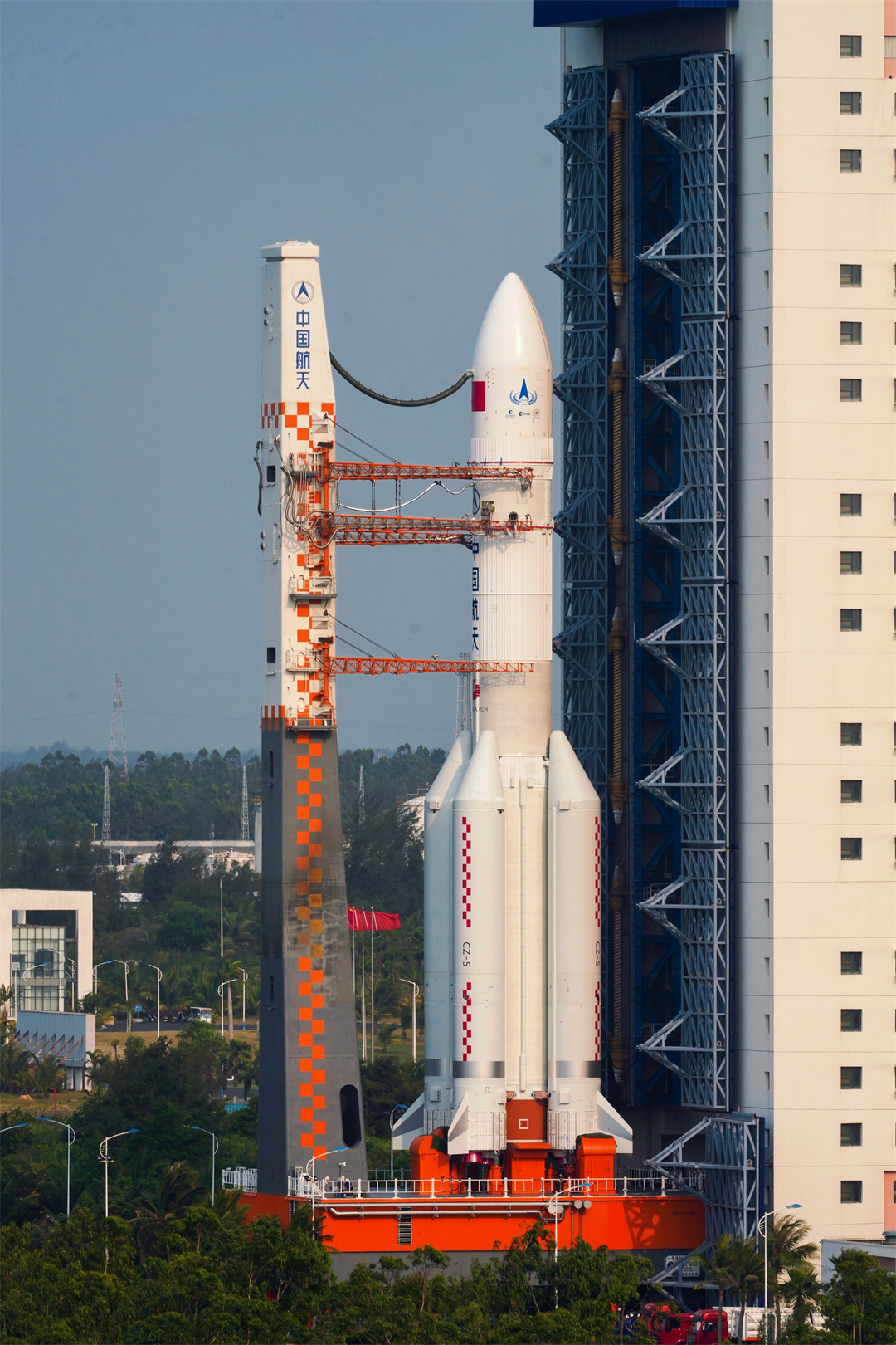 3月12日13时,长征五号遥八火箭搭乘远望21号和远望22号运输船顺利抵达海南文昌清澜港。3月15日,长五遥八火箭通过陆路运输,安全运抵中国文昌航天发射场厂房,火箭随即开始箭体总装测试工作。