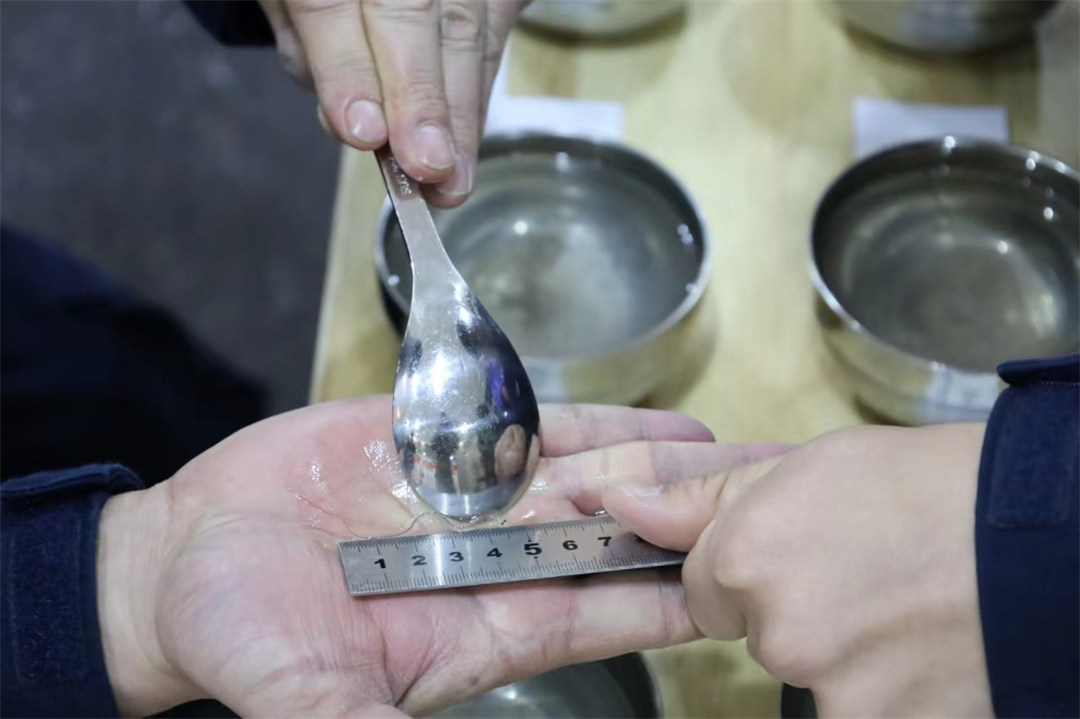 图为执法人员正在对鳗鱼苗进行预测量。