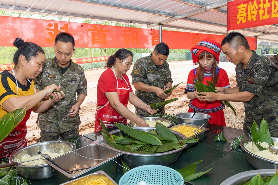 端午佳节到来之际,武警广西总队南宁支队驻地群众走进军营,和官兵们一起包粽子,让官兵在第二故乡感受到亲情的温暖。