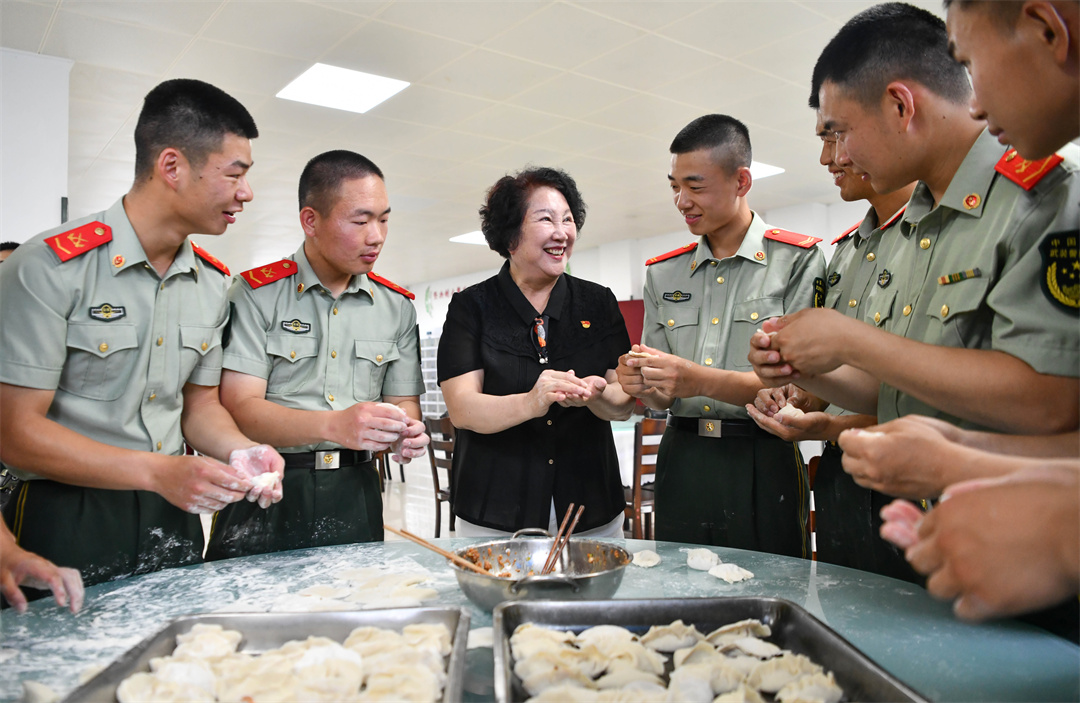 图为朱呈镕与支队官兵一起包饺子。