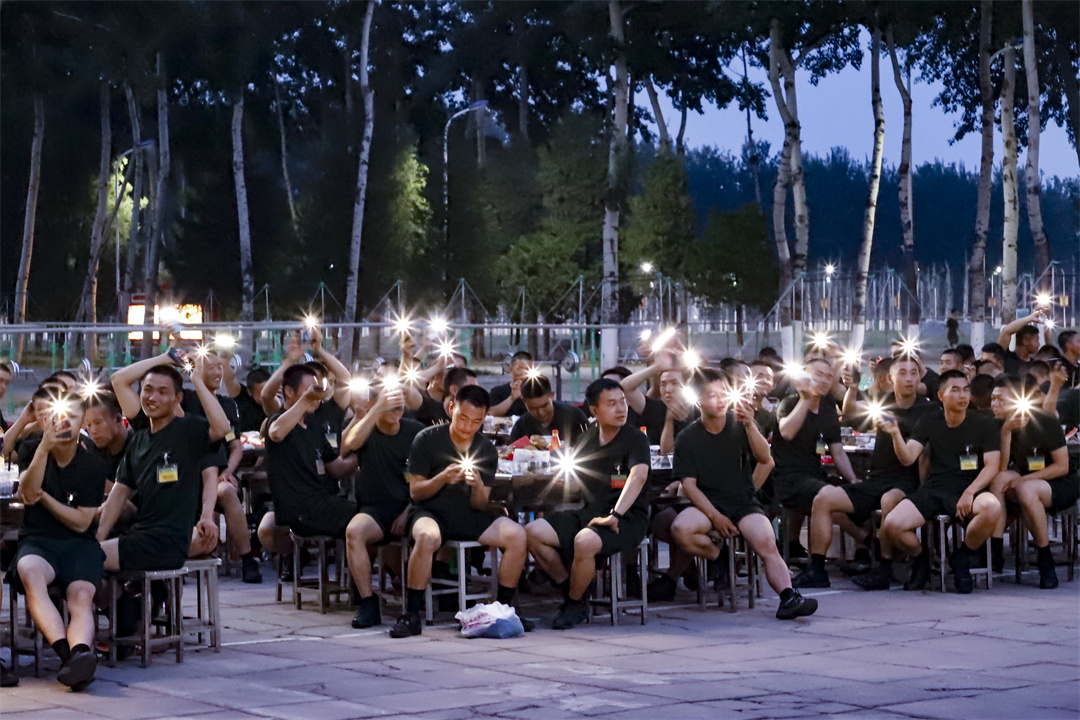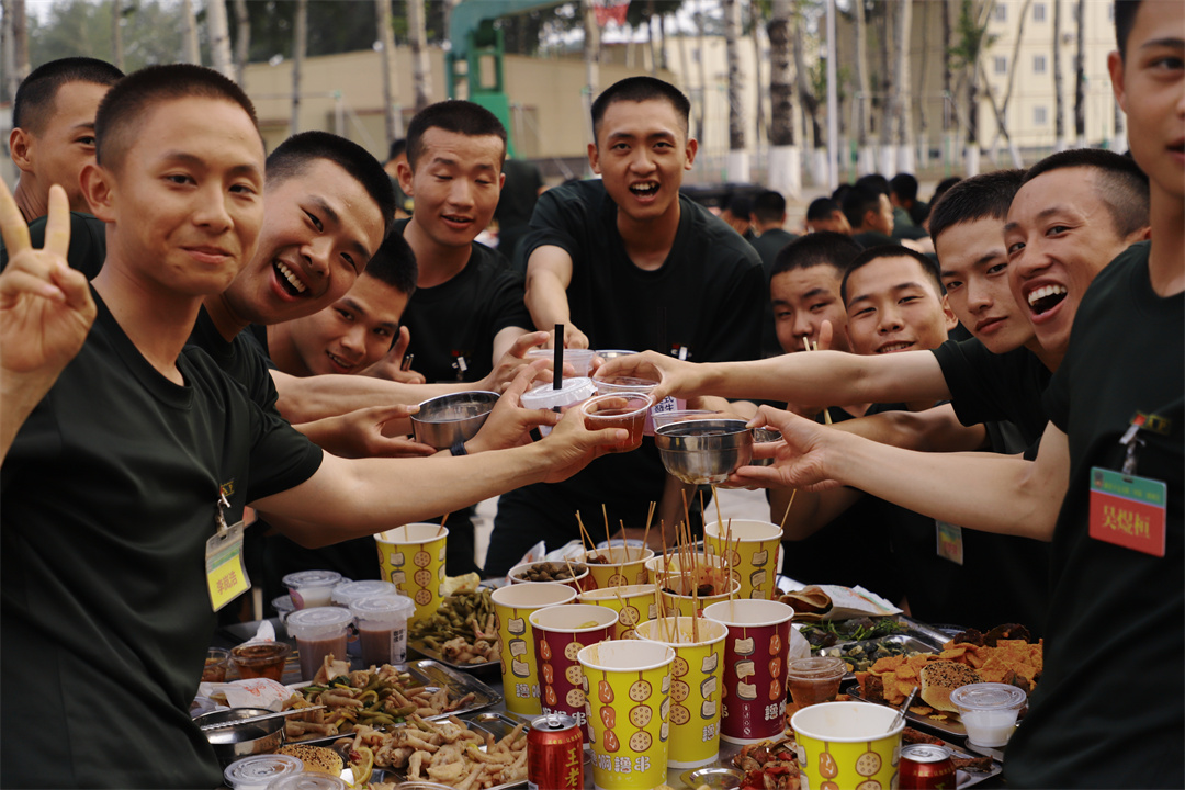 美食节当天,寿星们登上舞台,互相戴上生日帽,与大家共同分享第一次在军营过生日的新鲜与喜悦。在场官兵纷纷为寿星送上祝福,整个军营沉浸在一片欢声笑语中。