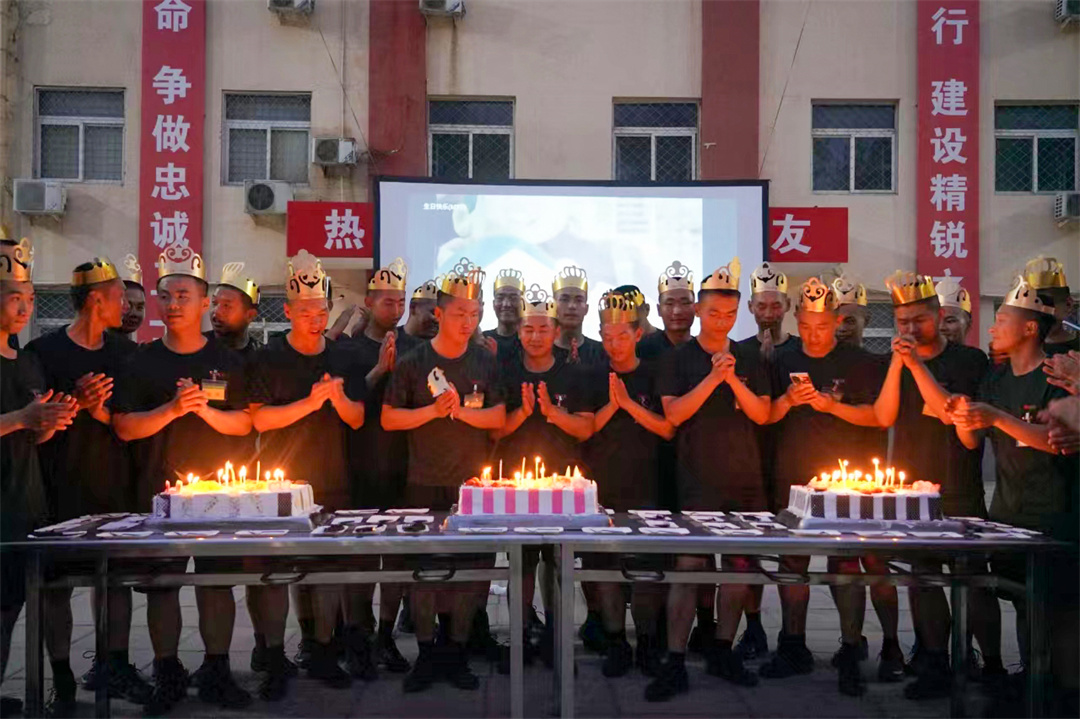 新兵詹从煜感叹道:“这是我第一次在军营过生日,每一个战友都像是我的家人一样,给我无尽的支持和关爱,今天这次集体生日将会是我一生难忘的回忆。”