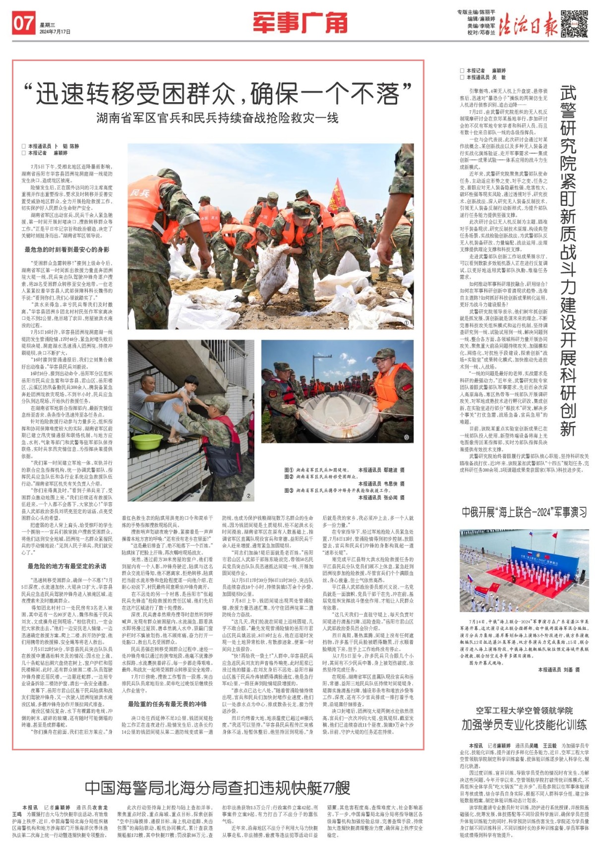 湖南省军区出动官兵、民兵千余人紧急驰援,第一时间开展封堵决口、搜救转移群众等工作。“正是平日牢记宗旨和政治锻造,决定了关键时刻挺身而出。”湖南省军区领导说。