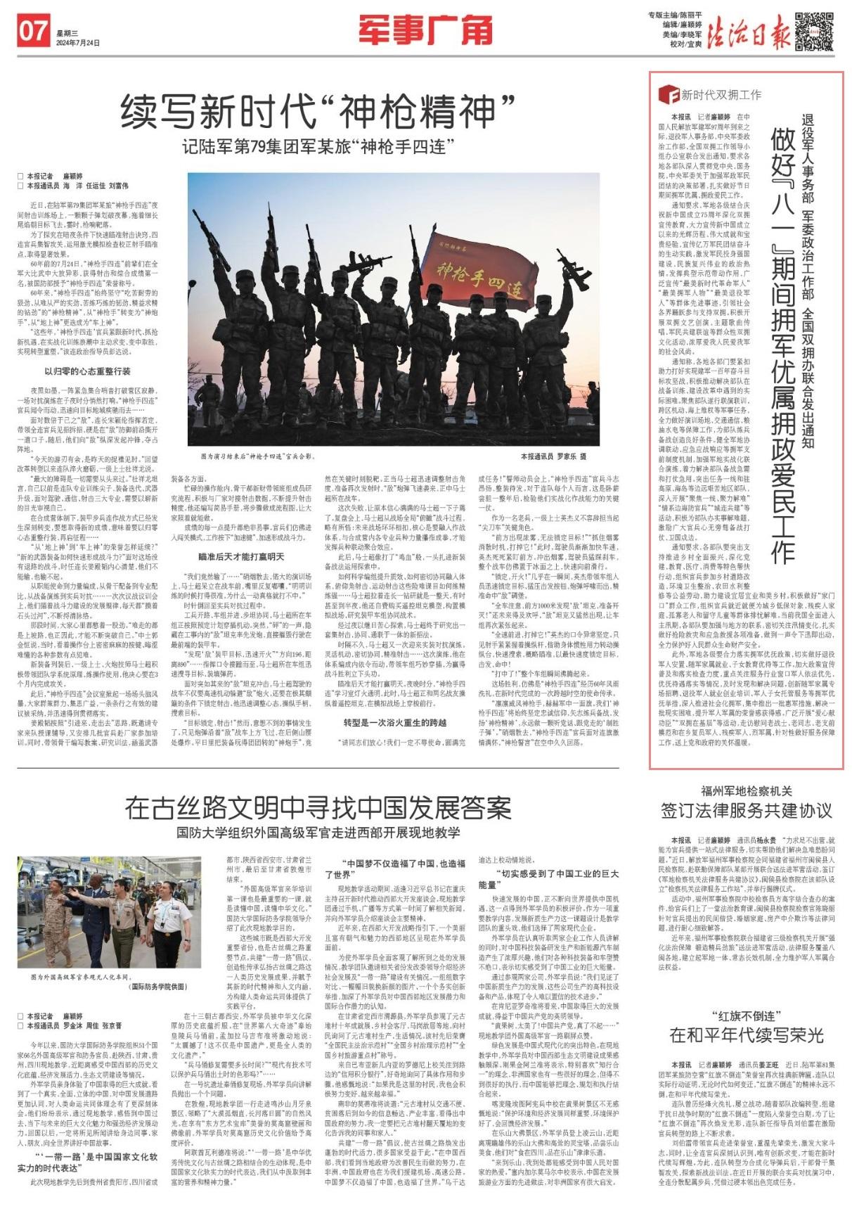 在中国人民解放军建军97周年到来之际,退役军人事务部、中央军委政治工作部、全国双拥工作领导小组办公室联合发出通知,要求各地各部队深入贯彻党中央、国务院、中央军委关于加强军政军民团结的决策部署,扎实做好节日期间拥军优属、拥政爱民工作。