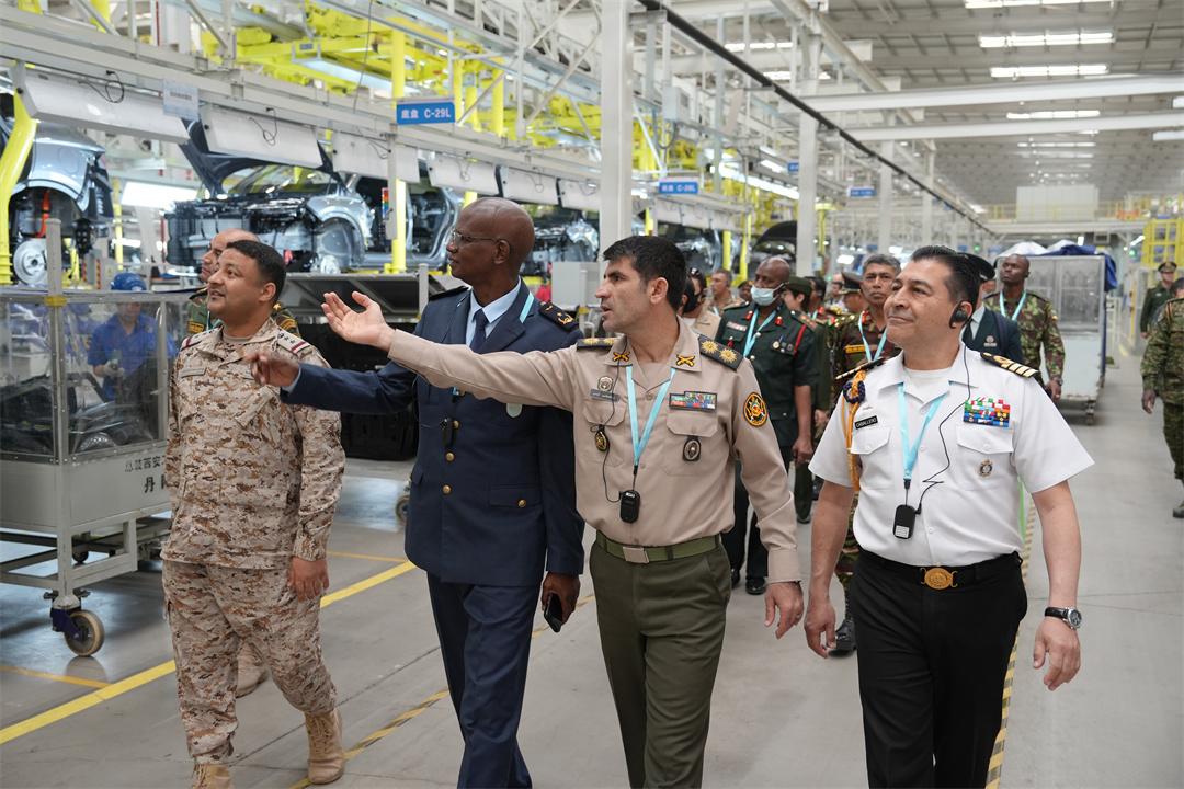 外军学员在认真听取两家企业工作人员讲解的同时,对中国科技装备研发生产和新能源汽车制造产生了浓厚兴趣,他们对各种科技装备和车型赞不绝口,表示切实感受到了中国工业的巨大能量。