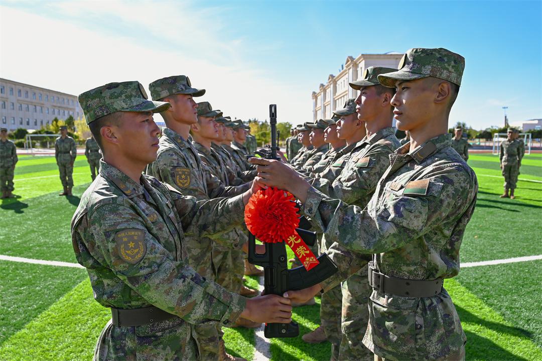 图为“神枪手四连”官兵组织“神枪”交接仪式。何隆 摄