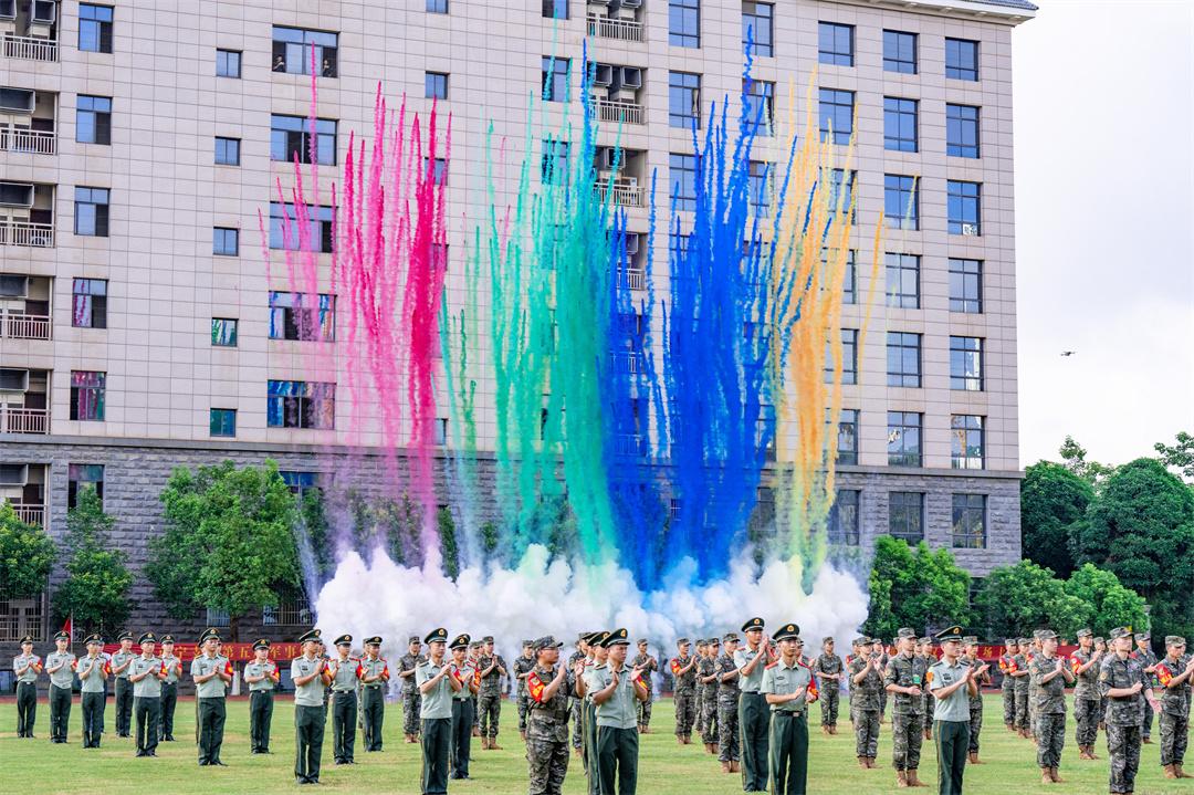图为参赛官兵和保障人员参加竞赛开幕式。