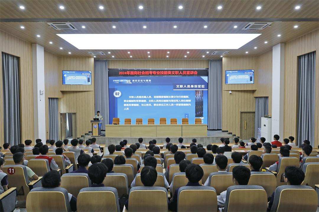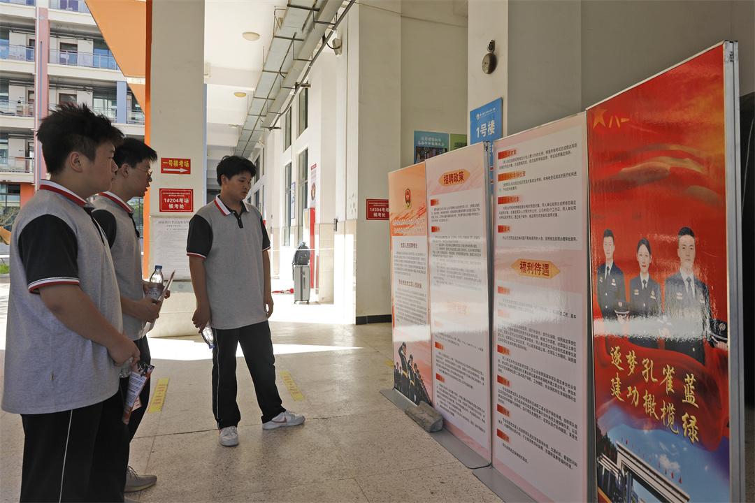 该校学生在与宣讲员交流时说:“从小我就有一个迷彩梦,通过宣讲了解了文职人员招考政策,期待能够加入这支队伍。接下来,我努力的目标就是穿上那身‘孔雀蓝’。”