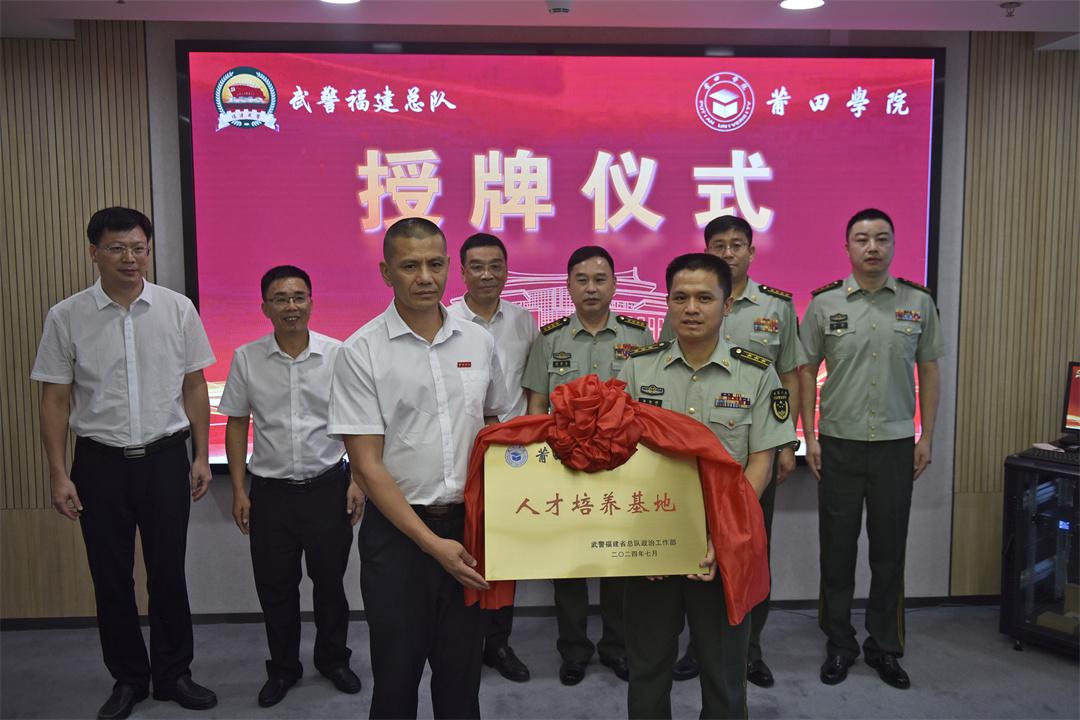 仪式最后,武警福建总队向莆田学院赠授“武警福建总队人才培养基地”挂牌。