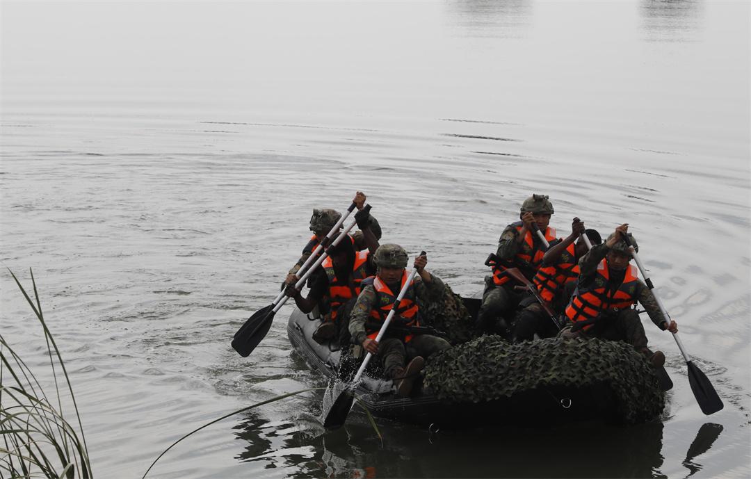 图为官兵正在进行水上渗透训练。周忠华 摄