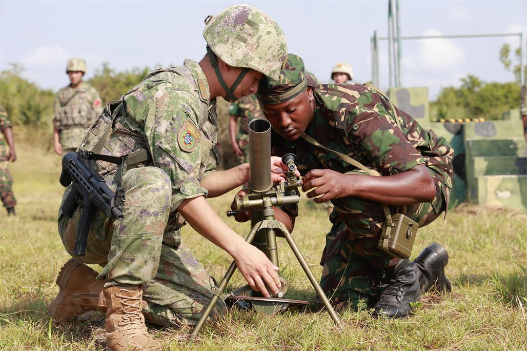图为中坦双方进行迫击炮操作训练。周忠华 摄