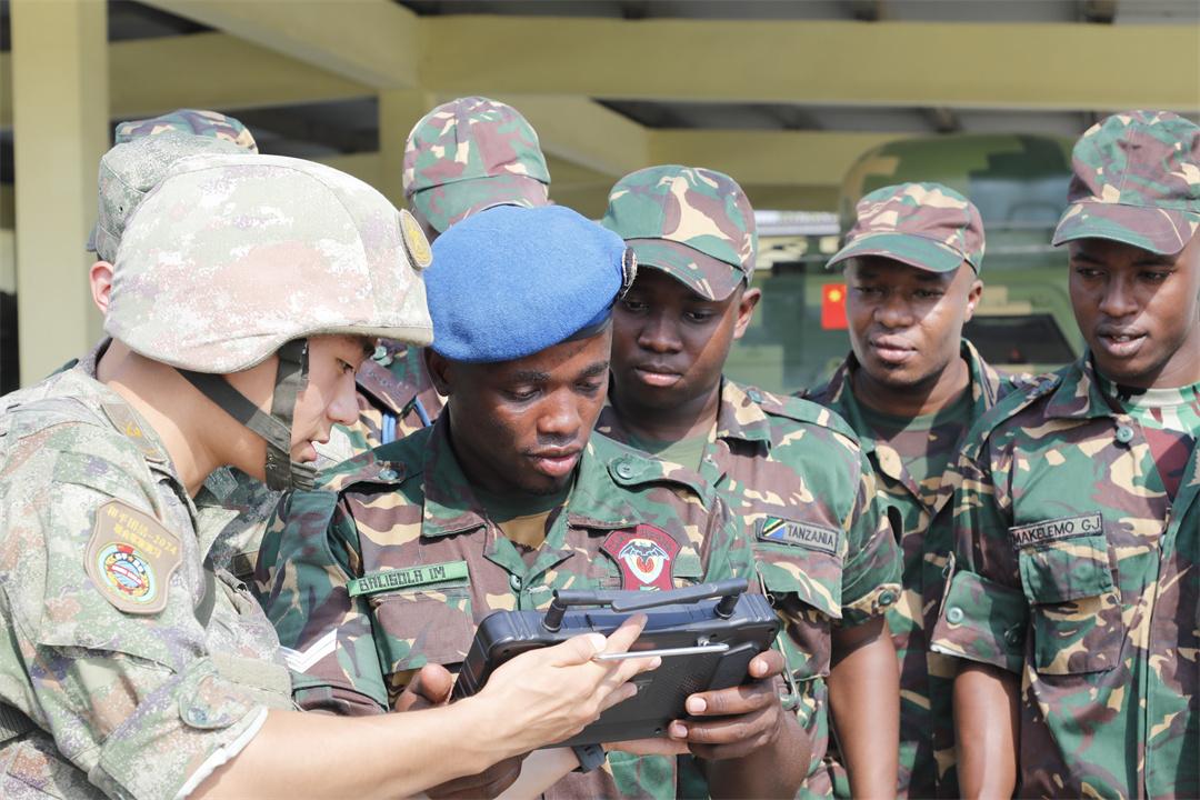 在侦察装备操作使用训练环节,中方参演人员展示了无人机和单兵战场雷达攻击侦察方式,并与坦方官兵近距离交流无人智能装备新型战斗理念和作战思路。在迫击炮班战斗行动训练中,迫击炮分队采取课目演示、体验交流的方式,中坦双方人员进行迫击炮架设与撤收,并深入交流炮兵分队战术基础。坦方官兵对中方过硬的战术技术拍手称赞,随后坦方也向中方参演人员展示其炮兵装备。