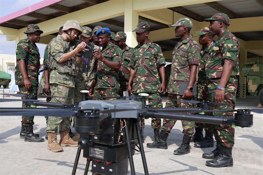 图为中坦双方学习使用飞炮无人机。周忠华 摄