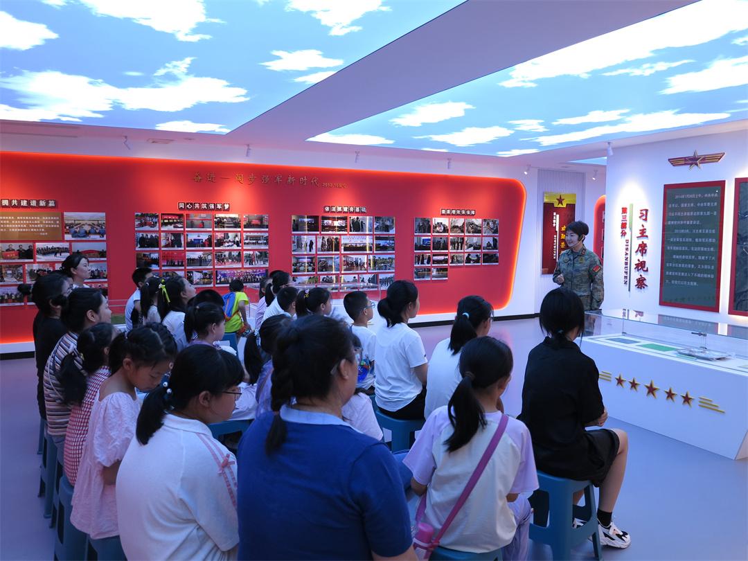 在国防教育课上,讲解员与孩子们积极互动,讲述国防教育故事和相关知识,将爱党爱国爱军的种子播撒在孩子们的心中,扣好他们人生的“第一粒扣子”。