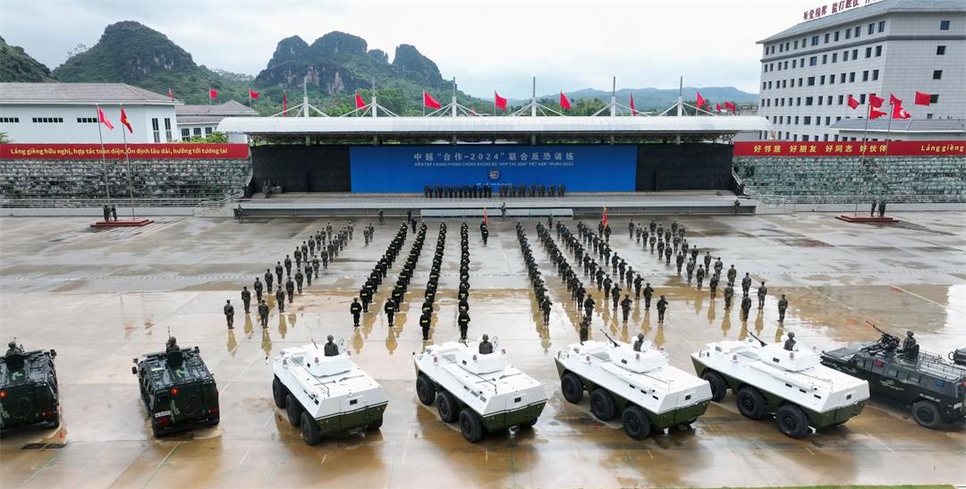 图为7月23日,中越双方举行“合作-2024”联合反恐训练启动仪式。陈鑫 摄