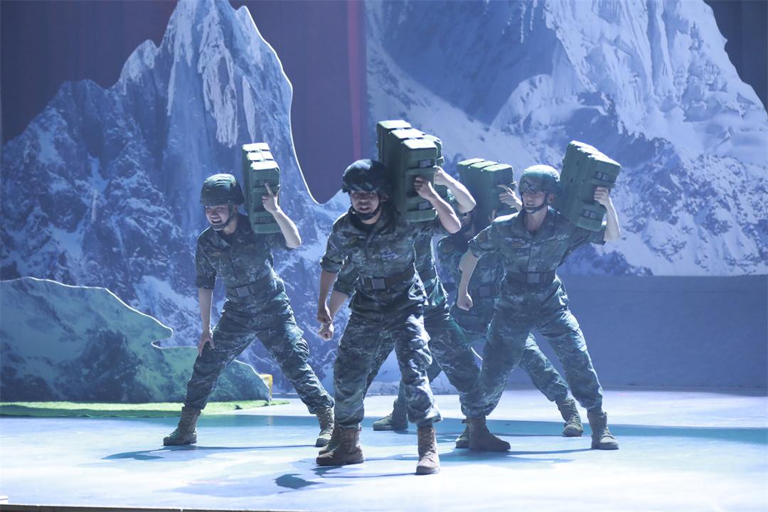 情景剧由武警青海总队官兵自创自排,分为“忠诚——赤胆无畏”“使命——担当奉献”“奋斗——凝聚前行”三个篇章,融合对白、演唱、舞蹈等多种方式,以总队历年来涌现出的张海西、段磊、张新磊、杨富祥、王赏、赵江维等先进典型为突出代表,以官兵们执勤处突、抢险救援、精准扶贫等重大任务为原型,将“两弹一星”精神、“西路军”精神、“老高原”精神融入其中,感人肺腑、催人泪下。