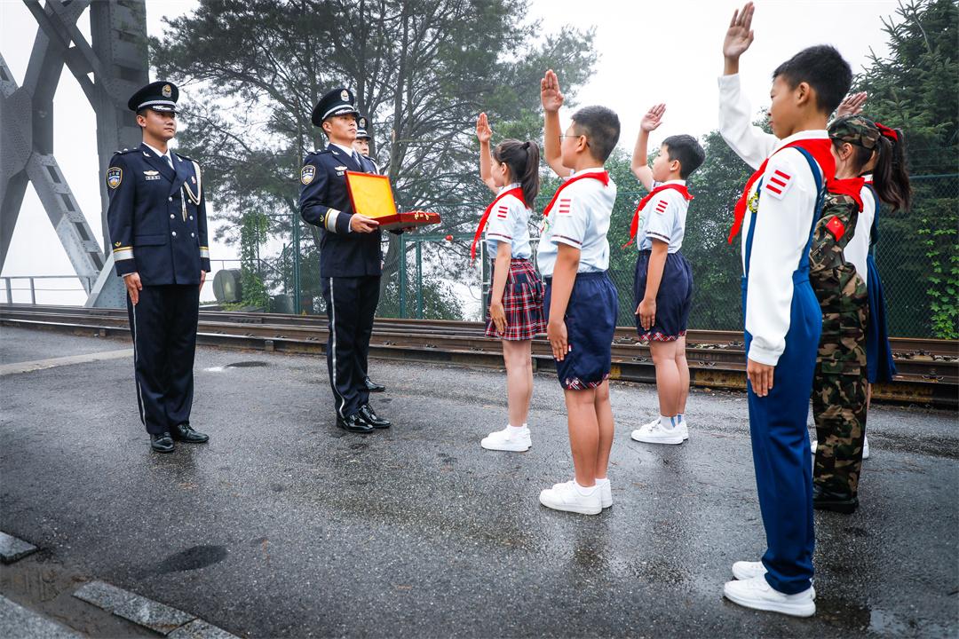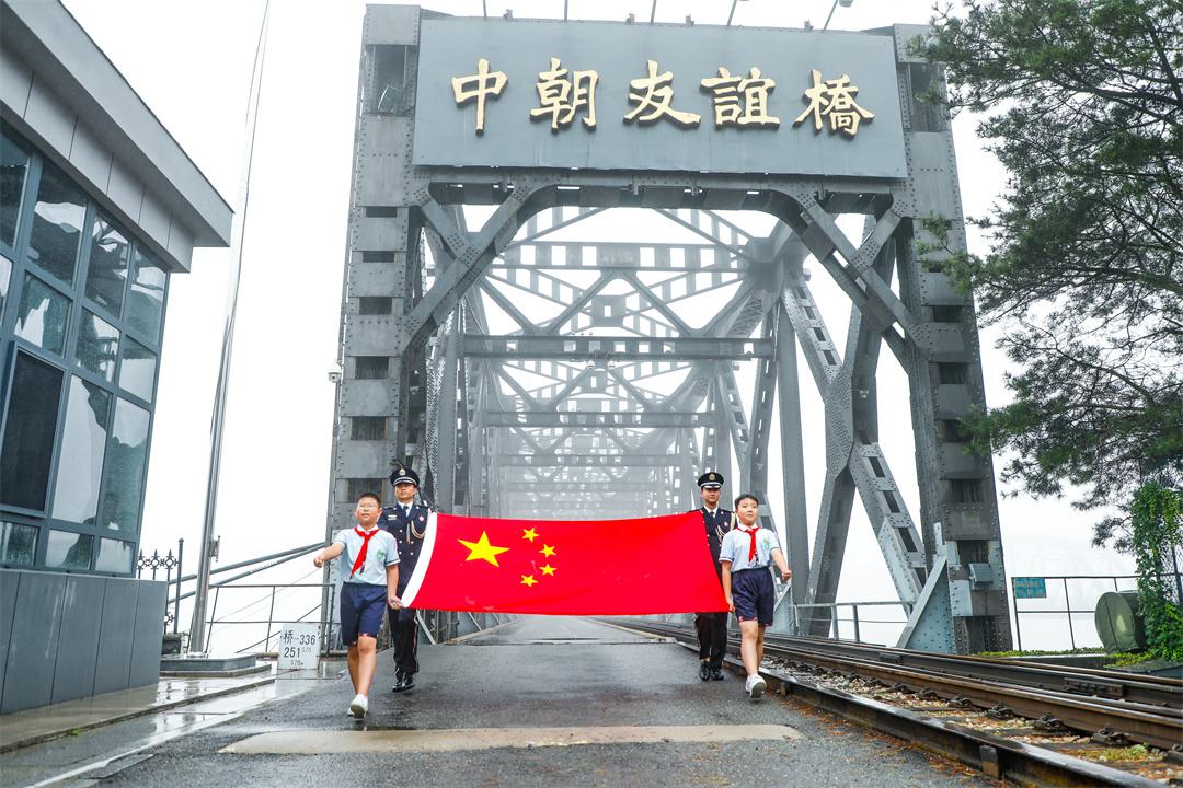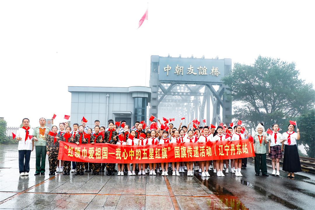 8月1日上午,由全国少工委联合中国载人航天工程新闻宣传办公室举办的“红领巾爱祖国——我心中的五星红旗”国旗传递活动来到辽宁省丹东市,五星红旗在鸭绿江中朝友谊桥传递。曾参加过抗美援朝战争的志愿军老战士、全国优秀少先队校外辅导员、少先队大中队辅导员、丹东市实验小学少先队员代表以及丹东各行业杰出代表70余人参加本次传递活动。
