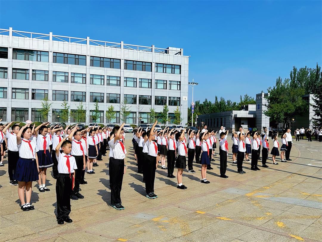 国旗飘扬,催人奋进。“我们要树立远大的理想,坚定信念、奋发图强,长大以后成为航天英雄和一汽工匠这样的榜样,科技助力未来,传承红旗精神,把我们的家乡吉林省建设得更加美好。”少先队员代表王奕皓说。