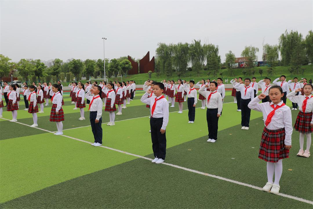 随后,2023年度“红领巾奖章”全国五星章获得者、五(8)中队长杨天聪带领全体队员在国旗下立下誓言,要坚定不移听党话、跟党走,用实际行动践行爱国之志。