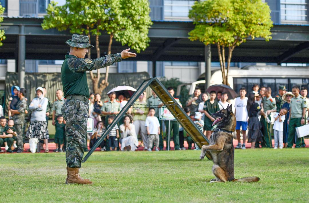 训导员熊安和军犬威力成为训练场焦点,服从性训练让大家看到训导员与军犬的默契配合。军娃与军犬合影环节,更是排了长长的队伍。